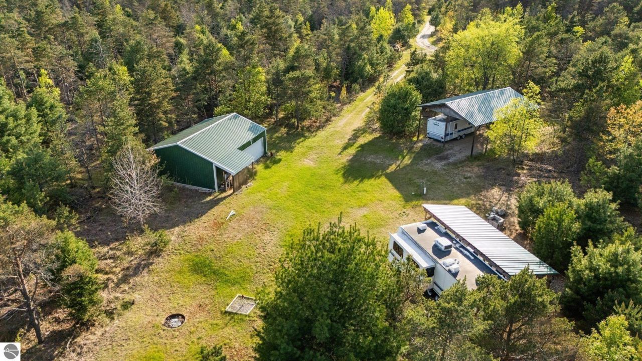 Beautiful 5.3-Acre Improved Property - Camper Ready with Utilities and Outbuildings! Don't miss this incredible opportunity to own a fully improved 5.3-acre parcel in the heart of Kalkaska County, conveniently located between Kalkaska and South Boardman. This scenic and private piece of land is ready for your enjoyment and offers everything you need for a perfect up-north getaway, recreational retreat, or future homesite. The property comes fully equipped with electric, a private well, and a septic field already installed--just pull in and plug in your camper! A spacious 34' x 24' pole barn with a concrete floor, full electric, metal roof, and siding provides excellent space for storing equipment, toys, or converting into a workshop. In addition, there's a 32' x 24' metal roof-over with a gravel pad, capable of sheltering two campers side by side. Enjoy the outdoors from the 10' x 28' covered porch with a durable metal roof, designed so you can pull your camper right up next to it--perfect for relaxing in the shade or entertaining guests. The land itself is partially cleared with a balance of wooded privacy and open space, ideal for outdoor activities or future development. This property offers the perfect blend of comfort, convenience, and natural beauty. Whether you're looking for a place to escape on weekends, set up a hunting basecamp, or build your dream home, this parcel is ready to go with all the essential infrastructure already in place.